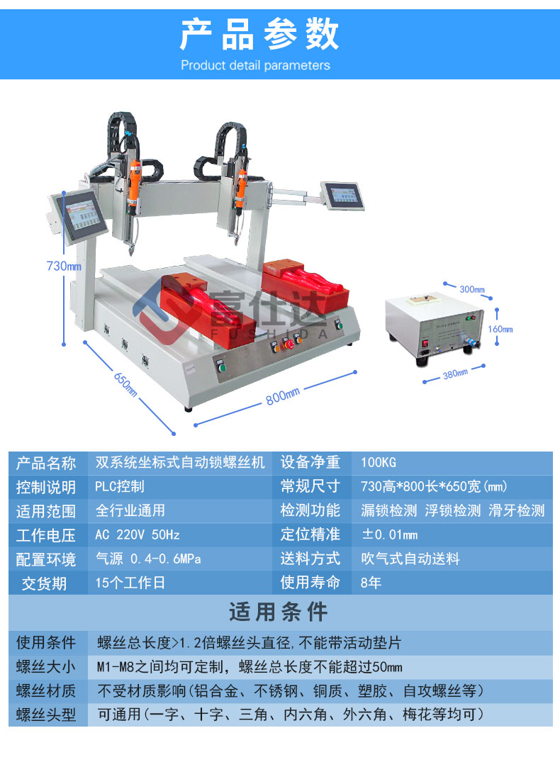 富仕達(dá)自動(dòng)鎖螺絲機(jī)尺寸可根據(jù)產(chǎn)品尺寸大小及生產(chǎn)線情況來(lái)設(shè)計(jì),定制真正好用的自動(dòng)鎖螺絲設(shè)備。